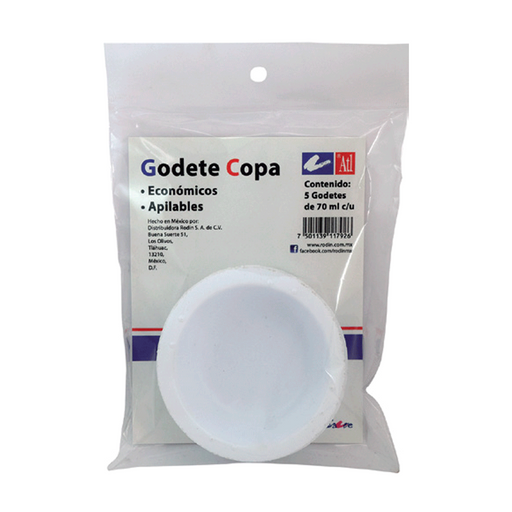 Copa godete para pintura y manualidades. Adecuados para preparar, diluir, mezclar colores y para disponer de barnices.Presentación: Bolsa con 5 pie...