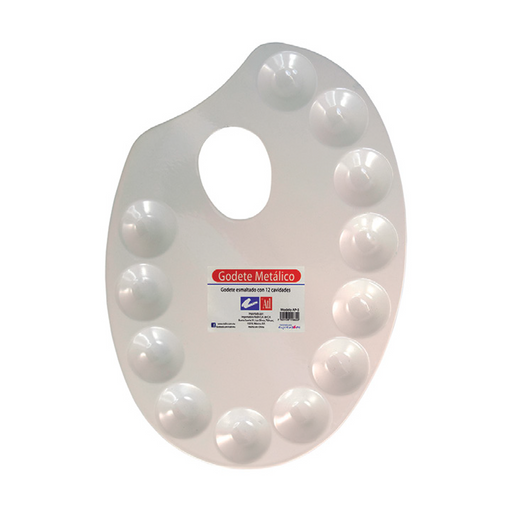 Paleta metálica esmaltada con 12 cavidades para pintura y manualidades. Adecuados para preparar, diluir, mezclar colores y para disponer de barnice...